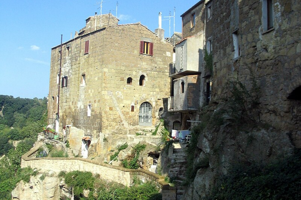 Il borgo medievale, con il suo enigmatico nome e le radici preistoriche, è stato un importante avamposto della civiltà falisca, una cultura affine ma distinta da quella etrusca. I visitatori accedono a Calcata da un'unica porta, che si apre su una pittoresca piazza adornata da curiosi "troni" di tufo. Qui si trovano i due principali monumenti: il Castello degli Anguillara con la sua torre ghibellina e la Chiesa del SS. Nome di Gesù, entrambi affacciati sulle suggestive viuzze del borgo.