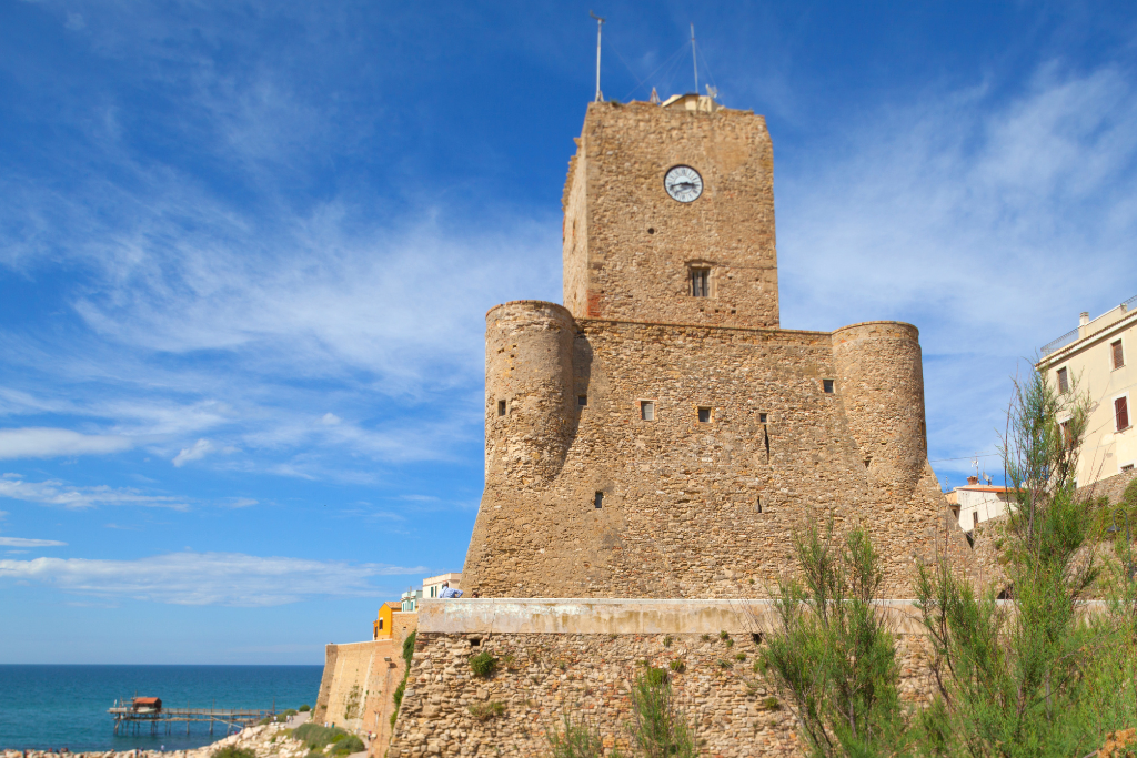 Il castello si presenta a noi con una massiccia struttura a picco sul mare, delimitata ai vertici da quattro torri in pietra calcarea. Ai suoi piedi sorge il "Belvedere dei Fotografi", una piccola terrazza panoramica sulle spiagge termolesi.