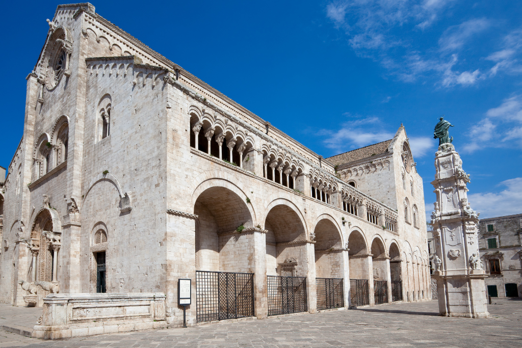 Nel suo centro storico, perfettamente conservato, batte il cuore pulsante del borgo. Tra i bellissimi palazzi nobiliari e le architetture medievali che si affacciano sulle piazze, attira l’attenzione la splendida Cattedrale di Bitonto, un capolavoro dell’architettura romanico-pugliese del XII secolo, che con la sua facciata in pietra bianca e la maestosa scalinata invita a scoprire i suoi tesori più preziosi.