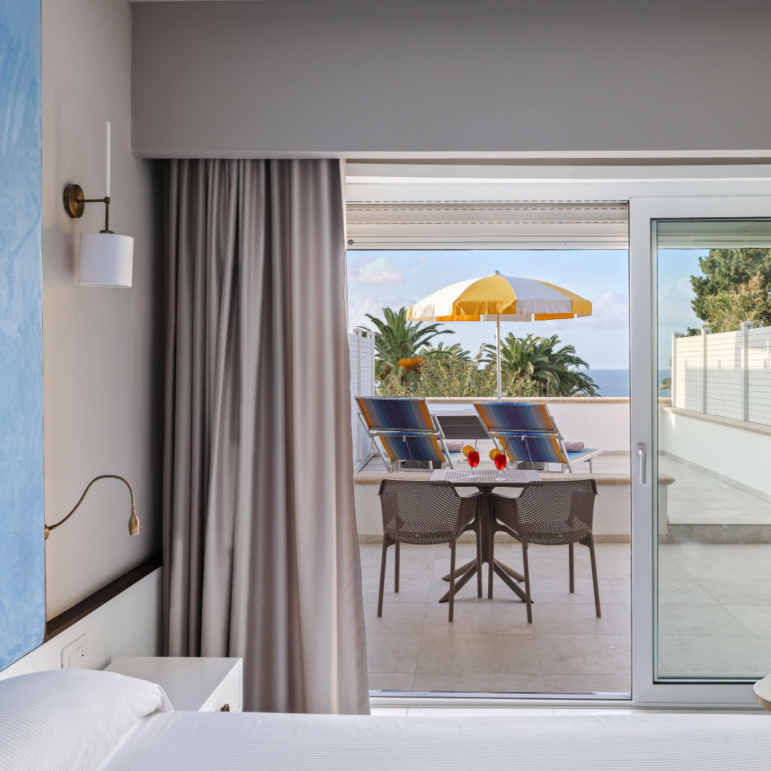 Ogni ospite può disporre dell'ampia area verde del resort oltre che dell'ascensore scavato nella roccia con cui arrivare alla spiaggia riservata dell'albergo.